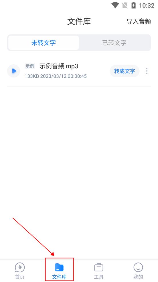 第一步:在文件库页面,选择“导入音频”