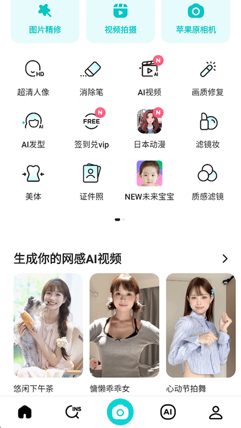 B612咔叽是更多年轻人都在用的手机相机软件,比手机自带的原相机功能更为丰富,而且软件里面可以轻松将照片的人像还有背景都进行模糊和锐化处理,使得几秒钟就让照片更加光彩照人和出色,ai功能的加入也让用户们省时省力,操作简单的同时还不会出现任何广告以及收费项目,自动设计出相关的ai视频,是很多创作者们都会用到的加工软件哦,有需要的小伙伴们快来下载B612咔叽试试吧。