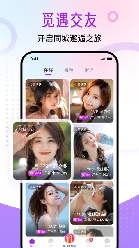 基于定位推荐附近异性,打破地域限制,随时开启线下邂逅。