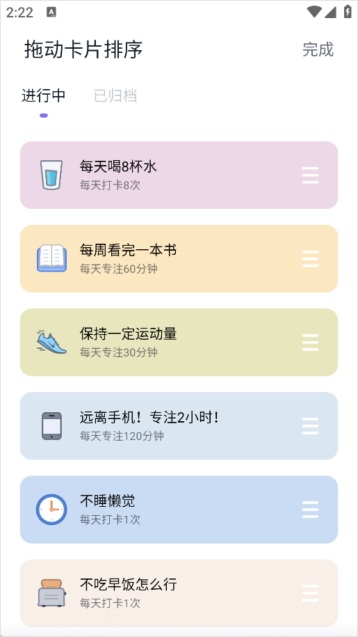 多维度习惯数据呈现,快速了解每个目标坚持的天数及完成情况,见证每天进步,收获满满成就。