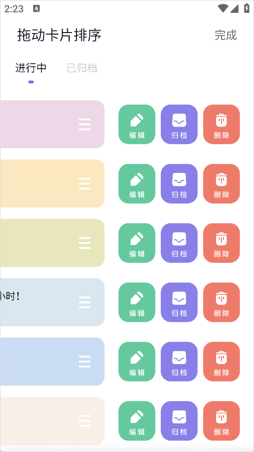 2、向左滑动该任务条目,点击出现的【删除】按钮即可移除。