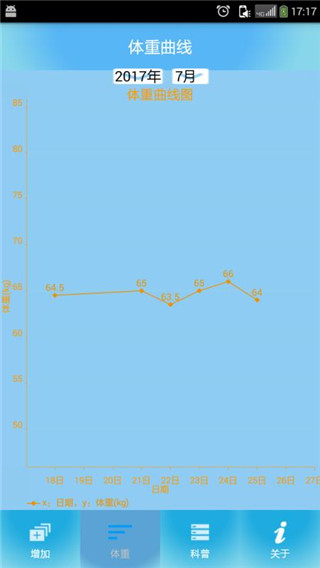 4、用户通过记录每天的体重情况,可以在曲线图上清晰的了解过去到现在体重变化。