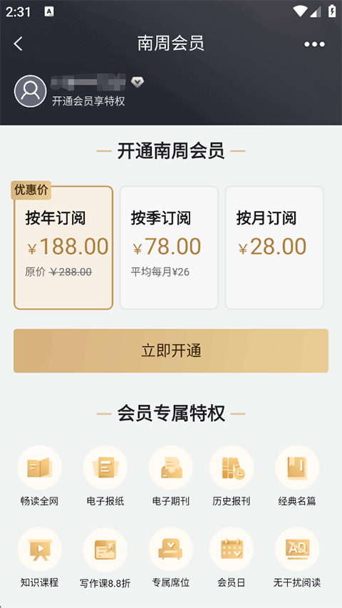 3、在会员页面,您可以选择按年订阅,按季订阅以及按月订阅等。