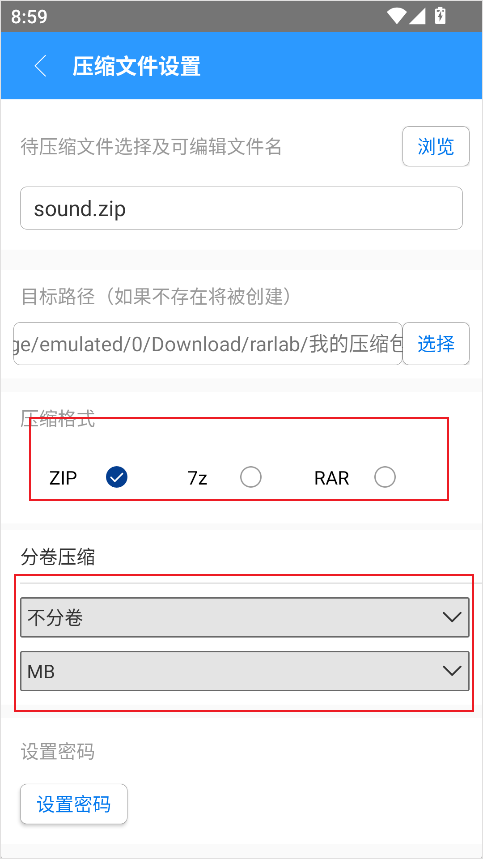 2. 可自主创建压缩文件,并支持为压缩包添加密码保护。