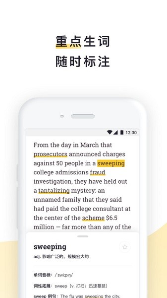 4、重点生词,随时标注,让用户记录背诵生词更方便,掌握更多单词基础。